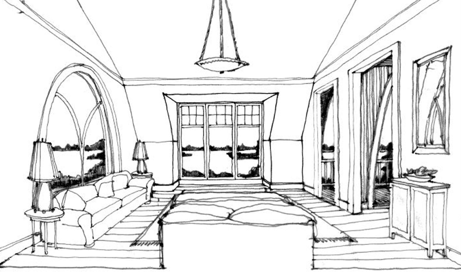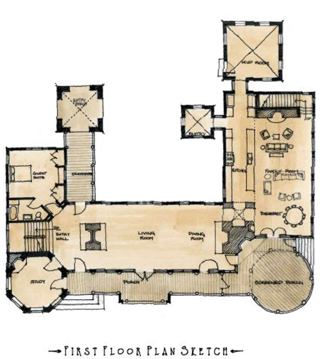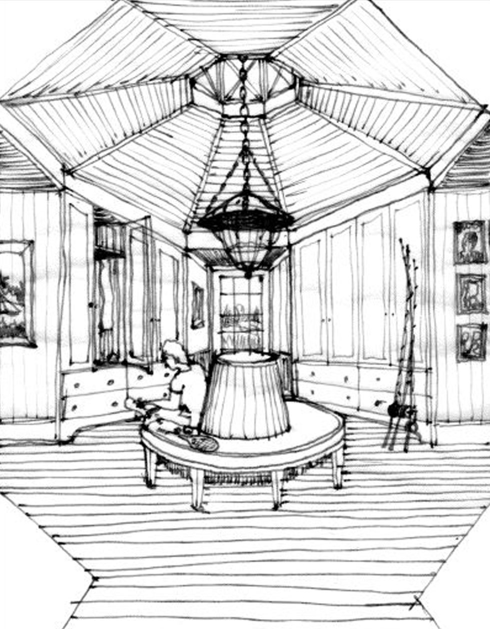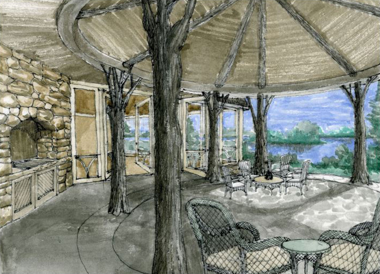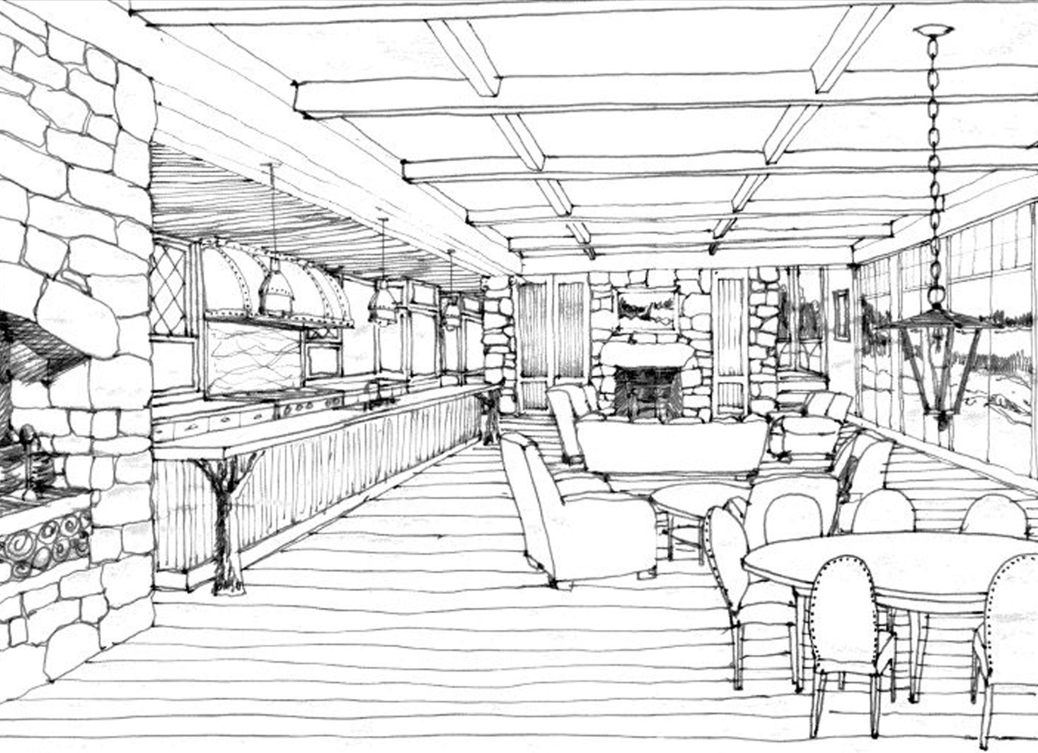 The site for this new summerhouse is located on the Canadian side of the Saint Lawrence River in the Thousand Islands region near Brockville, Canada. A natural rock outcropping combined with views that sweep around to the cove formed the basis for the "U" shaped plan layout which assured that every room would offer a unique river view. To be built primarily of cedar shingle siding and local stone, the exterior materials of the house will appear to grow out of the natural features of the wooded, rocky site.